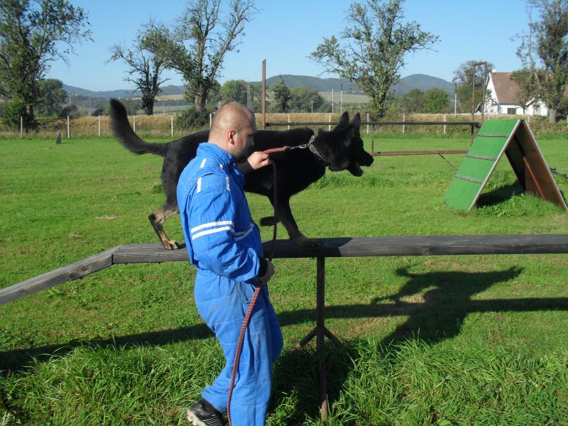This test consits with searching into open areas, like fields, grassy areas, woods, soccer fields, hangars, big storage places etc. Dogs has to search also on their own, mostly with no stimulation. They have to search at least for a couple of minutes without showing lack of focus or returning to a handler for help.